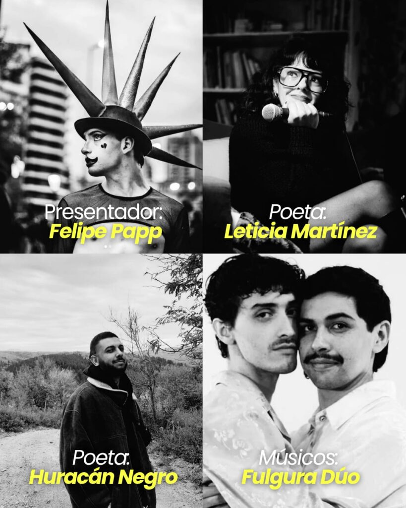 La propuesta se desplegará con un micrófono y la participación de un presentador, dos poetas, un músicx y un cierre con micrófono abierto. La clave del encuentro: asistir vestidos de negro, como parte del ritual poético.