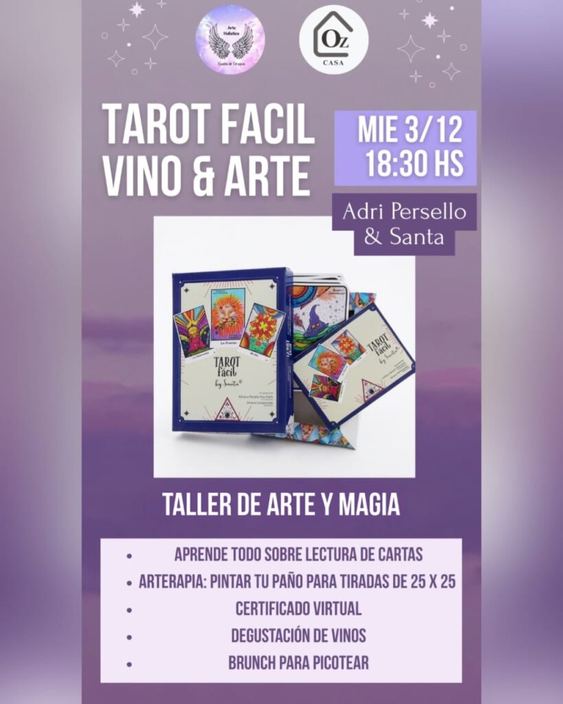 Casa Oz, el reconocido espacio creativo de Barrio Urca, vuelve a sorprender con una propuesta pensada para quienes buscan conectar, aprender y vivir una tarde distinta. Este miércoles 3 de diciembre a las 18 hs, llega el Taller Vivencial – Tarot Fácil + Vino + Arte & Amigas, una experiencia guiada por Adri Persello y Sil Santanoceto, ideal tanto para quienes se inician en el mundo del Tarot como para quienes quieren profundizarlo desde un enfoque amoroso y terapéutico.