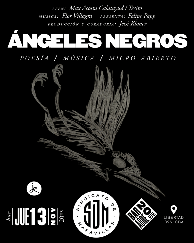 Una vez finalizada la performance principal, la noche abre su frontera final: un micro abierto para quienes sientan el impulso de compartir sus propios textos, pensamientos o historias. Porque si algo propone “Ángeles Negros” es que la poesía es un territorio colectivo.