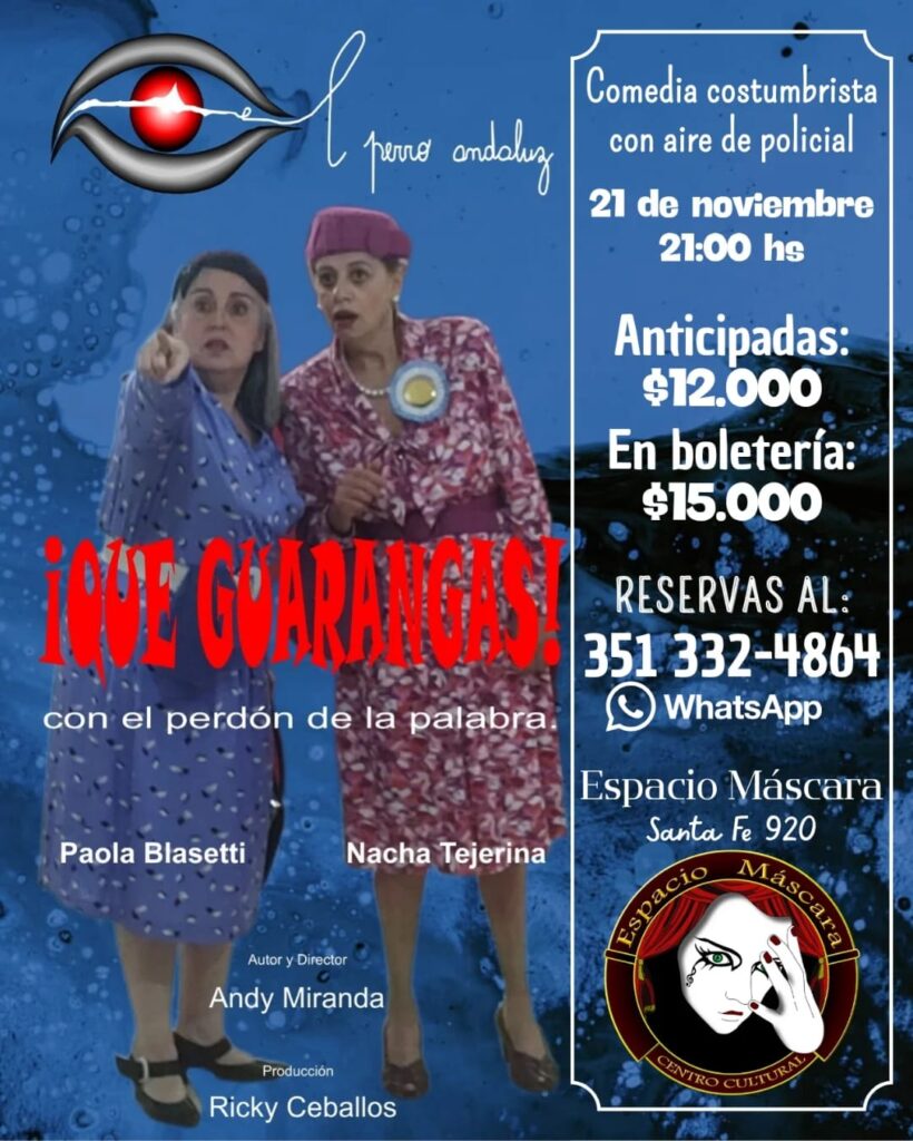 La histórica compañía cordobesa El Perro Andaluz cumple tres décadas de trayectoria y lo festeja con el estreno de “¡Qué Guarangas! (con el perdón de la palabra)”, una comedia costumbrista con tintes policiales que promete risas, intriga y una mirada profunda sobre los deseos y secretos que nos vuelven humanos. La función será el 21 de noviembre en Espacio Máscara.