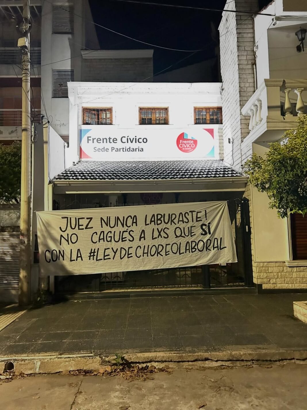Los carteles fueron colocados estratégicamente en lugares vinculados a tres senadores cordobeses. Uno de ellos apareció en la fachada del Frente Cívico, espacio político del senador Luis Juez, quien ha sido cuestionado por su accionar y sus presuntos vínculos con el narcotráfico. Otro cartel fue colocado en la sede del Partido Justicialista de Córdoba, en un claro mensaje a la actual senadora Alejandra Vigo. Cabe destacar que la reforma laboral es el tema central del actual debate legislativo.