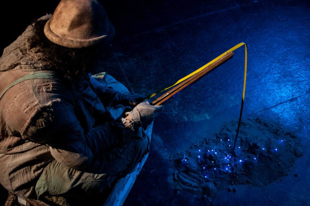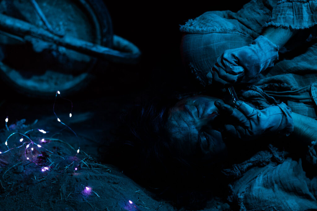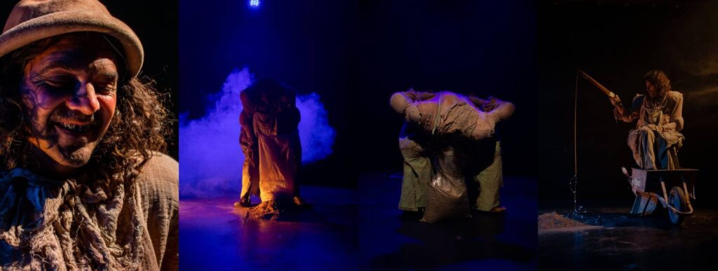 La función será al aire libre, donde la noche, el viento y el espacio abierto funcionan como un escenario vivo. Humor negro, comedia muda y una poética del desentierro se mezclan con el público desde la primera escena.