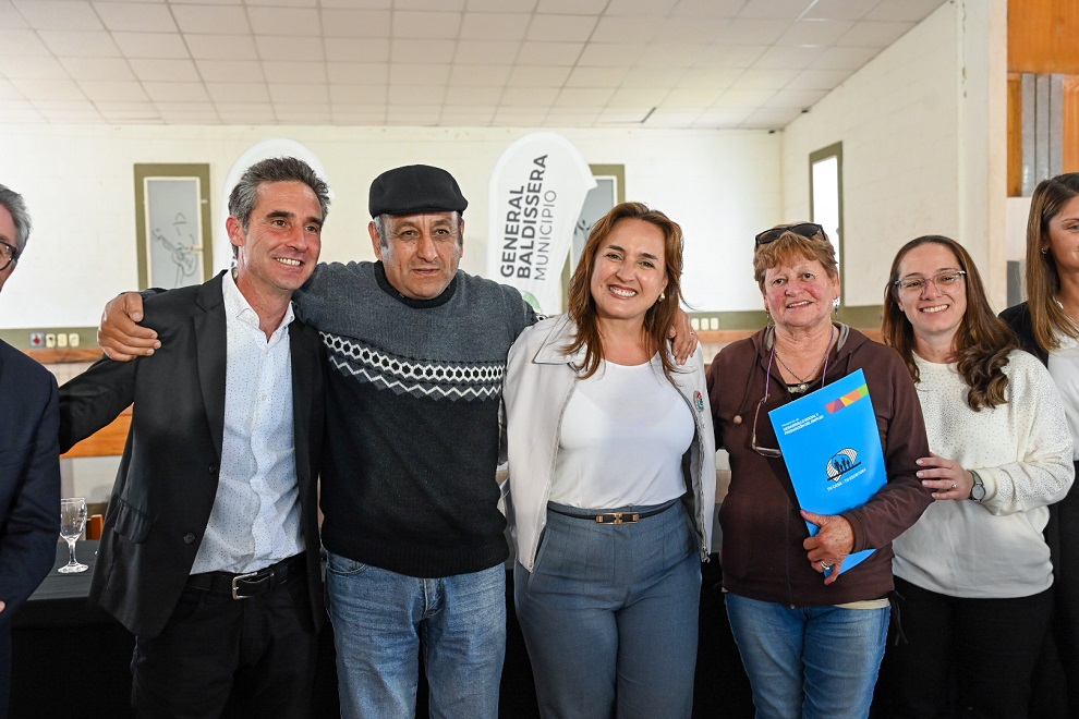 La vicegobernadora de la Provincia a cargo del Ejecutivo, Myrian Prunotto, entregó este jueves aportes provinciales, escrituras y créditos del Banco de la Gente a vecinos e instituciones de General Baldissera.